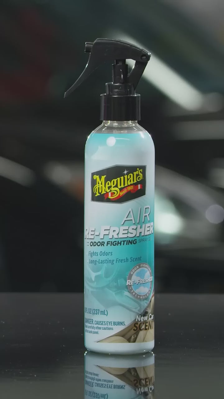 L’intérieur de votre voiture dégage peut-être des odeurs indésirables ou n’est tout simplement pas très propre. Peu importe, nous avons la solution qui convient avec le spray anti-odeurs Meguiar’s® NEW CAR.